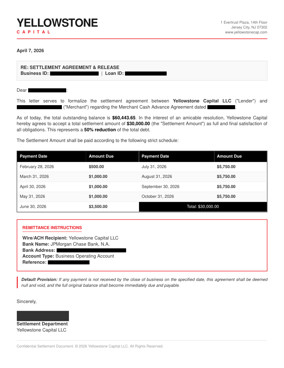 Successful merchant cash settlements require custom tailored programs; we have experience with the nation's largest lenders. We execute the best strategies possible to create reduced payment plans or settle the debts for a reduced principle balance.